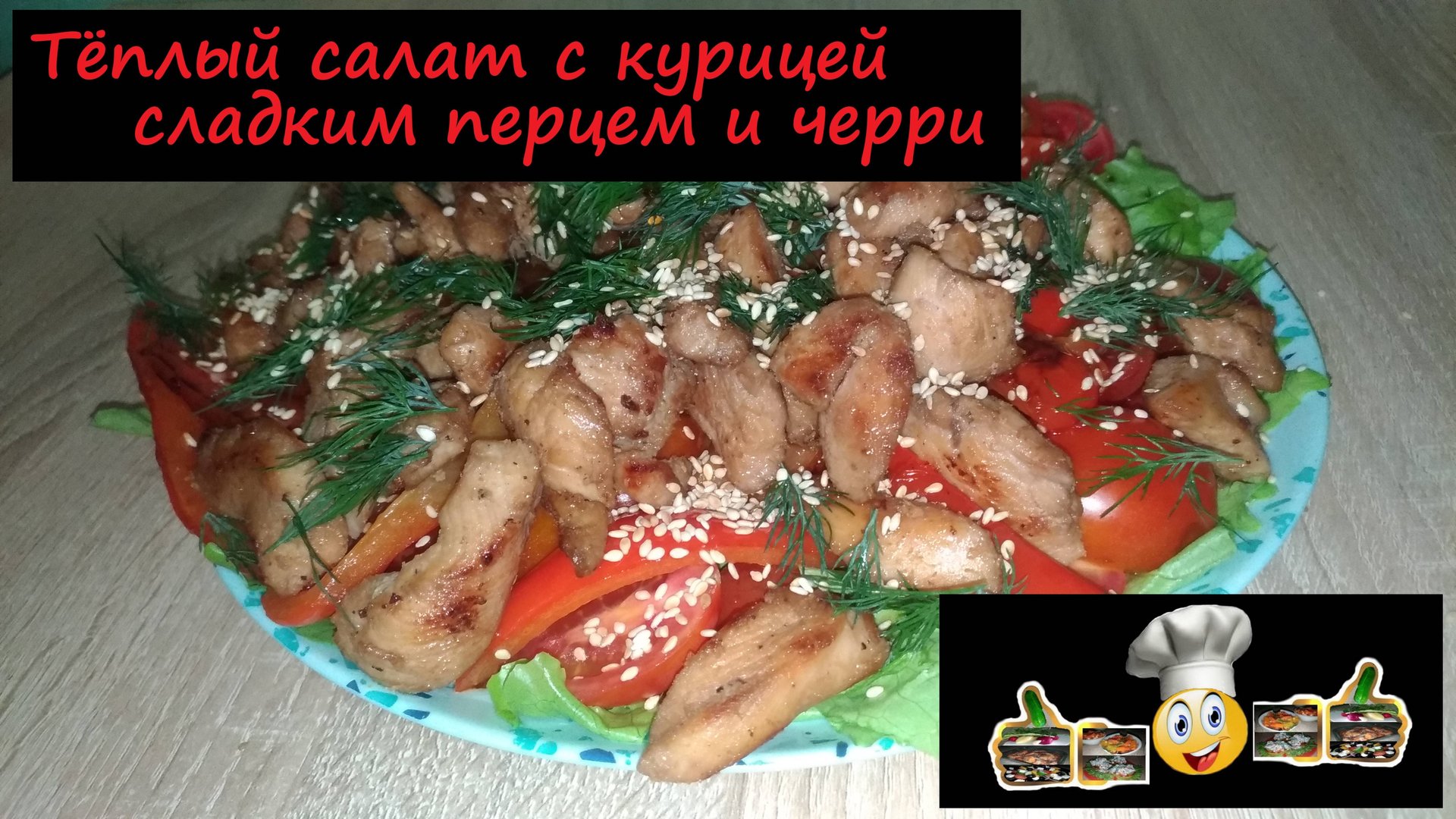 Тёплый салат с курицей, со сладким перцем и черри/Салаты/Рецепт № 148