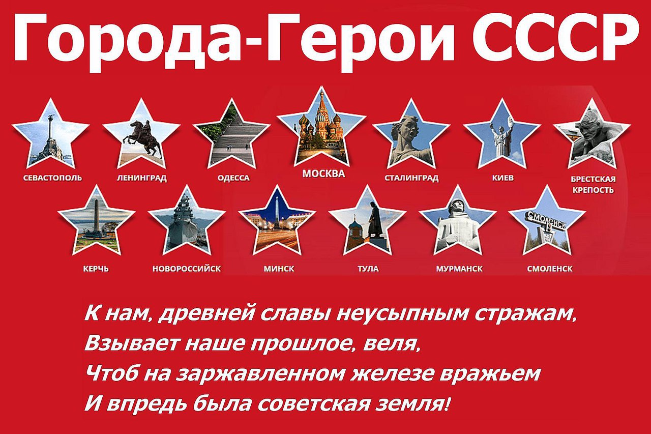 8 мая 1965 г. В СССР утверждено Положение о почетном звании «Город-герой» Впервые в Советском Союзе городами-героями были названы города Ленинград (Санкт-Петербург), Сталинград (Волгоград), Севастополь и Одесса в приказе Верховного Главнокомандующего от 1 мая 1945 года. Официально в качестве государственной награды звание «Город-герой» было установлено 8 мая 1965 года, когда Президиум Верховного Совета СССР издал Указ об утверждении Положения о почетном звании «Город-герой Мои контакты: Ютуб- https://www.youtube.com/channel/UC60YqkKksZaT2x-uLcUCCCg ВКонтакте- https://vk.com/oblinova1965 ОК- https://ok.ru/group/59523134783660/video/c4532140 Телеграм- https://web.telegram.org/a/#-1001443284231
