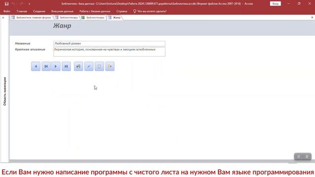https://kursovik.com/programming/103160189.html Курсовая работа: База данных «Библиотека». Среда разработки: MS Access. База данных: MS Access. Приобрести исходники(все файлы проекта) данной программы Вы можете, заполнив следующую форму: https://kursovik.com/programming/103160189.html?camefrom=rutube#form Заказать отчёт(описание): https://kursovik.com/programming/103160189.html?camefrom=rutube#pz_need Заказать модификацию: https://kursovik.com/uniform.html?modify=103160189&camefrom=rutube Заказать новую программу: https://kursovik.com/programming_order.html?camefrom=rutube Задать вопрос автору: https://kursovik.com/programming/103160189.html?camefrom=rutube#vopros Наш Телеграм-БОТ для поиска готовых работ по программированию https://t.me/kursovikcom_bot , в нашей базе более 5и тысяч готовых работ, для более эффективного поиска используйте наш Телеграм-БОТ. Список наших готовых работ по программированию: https://kursovik.com/progtopic.html?camefrom=rutube Разработка программ на заказ согласно Вашему заданию: https://kursovik.com/programming_order.html?camefrom=rutube Мы пишем программы практически на всех языках программирования, работаем с различными базами данных, выполняем как мелкие задачки, так и крупные проекты. Разрабатываем и запускаем в работу ЧАТ-БОТы. Обращайтесь - всегда будем рады Вам помочь! Если нужно переписать данную программу на другой язык программирования - обращайтесь - сделаем. Адрес нашего сайта: https://kursovik.com Наши контакты: https://kursovik.com/contacts.html Наша группа ВК: https://vk.com/kursovik (всем подписчикам скидка 5%) Наш Телеграм-канал: https://t.me/kursovik (всем подписчикам скидка 5%) Наш Дзен-канал: https://dzen.ru/kursovik (всем подписчикам скидка 5%) Наш RuTube-канал: https://rutube.ru/channel/41864889 (всем подписчикам скидка 5%) Наш YouTube-канал: https://youtube.com/@kursovik_com (всем подписчикам скидка 5%) (скидки не суммируются :-) #курсоваяработа #базыданных #msaccess #программирование