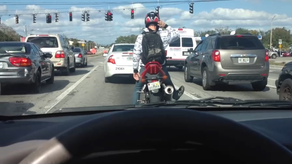 Еще один мотоциклист не смог удержаться от танца на светофоре )