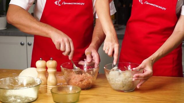 Чебуреки с креветками и горбушей Тесто на 10 чебуреков: Газированная вода 300 г Уксус 9% 1,5 ст. л. Масло подсолнечное 50 г Соль 1 ч. л. Мука пшеничная в/с 500-600 г В миску налить газированную воду, уксус, добавить соль и масло, размешать. Частями насыпать просеянную муку. замесить умеренно крутое тесто, не липнущее к рукам. Завернуть в пленку и дать отдохнуть 15 минут. Фарш из креветок: Креветки очищенные 300 г Лук репчатый 150 г Масло растительное для жарки Соль Перец черный Креветки разморозить и мелко нарезать. Лук очистить, нарезать мелким кубиком, обжарить на масле до готовности. Измельченные креветки соединить с обжаренным луком, посолить и поперчить, хорошо перемешать. Фарш из горбуши: Горбуша филе 300 г Лук репчатый 150 г Масло растительное для жарки Соль Перец черный Филе разморозить и мелко нарезать. Лук очистить, нарезать мелким кубиком, обжарить на масле до готовности. Измельченную горбушу соединить с обжаренным луком, посолить и поперчить, хорошо перемешать. Тесто раскатать толщиной 1-2 мм, вырезать кружки. На половину кружка теста выложить фарш, сложить пополам. Края защипнуть вилкой. Жарить в большом количестве растительного масла до готовности. Делайте покупки на нашем сайте https://www.delikateska.ru/ и готовьте вместе с нами! МЫ в VK: http://www.vk.com/delikateska Мы в TELEGRAM: https://t.me/delikateska_ru Мы в TikTok: https://www.tiktok.com/@delikateska.ru Мы в ЯНДЕКС ДЗЕН: https://zen.yandex.ru/delikateska Мы в ОДНОКЛАССНИКАХ: https://ok.ru/delikateska