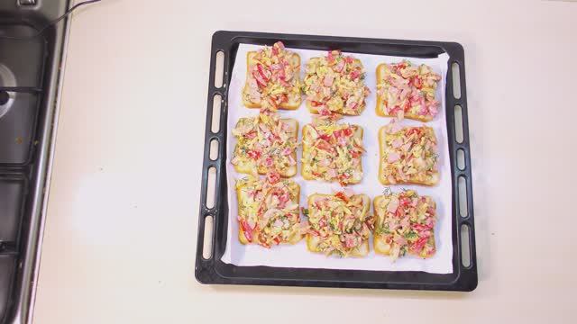 Горячие бутерброды с помидором, сладким перцем, луком, колбасой, сыром и укропом!