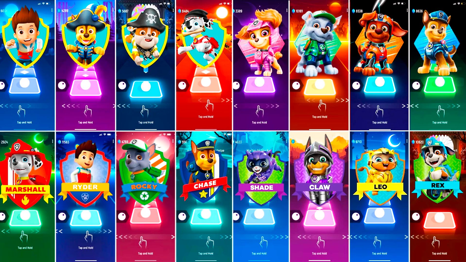 Мультики для Детей Щенячий Патруль Tiles Hop - РАЙДЕР, ГОНЩИК, КРЕПЫШ,МАРШАЛЛ, СКАЙ, РОККИ, ЗУМА
