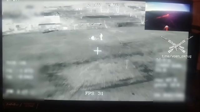 Удар дроном на оптоволокне по операторам тяжелого гексакоптера ВСУ (Баба-Яга)