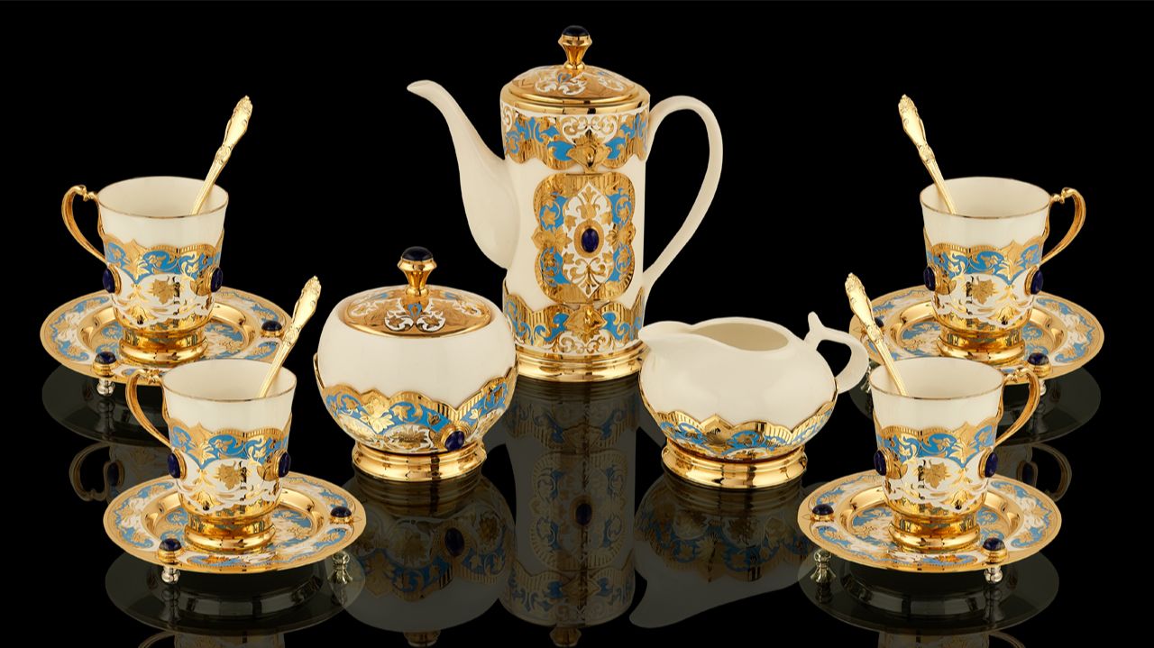 Кофейный сервиз Императорский на 4 персоны с лазуритами