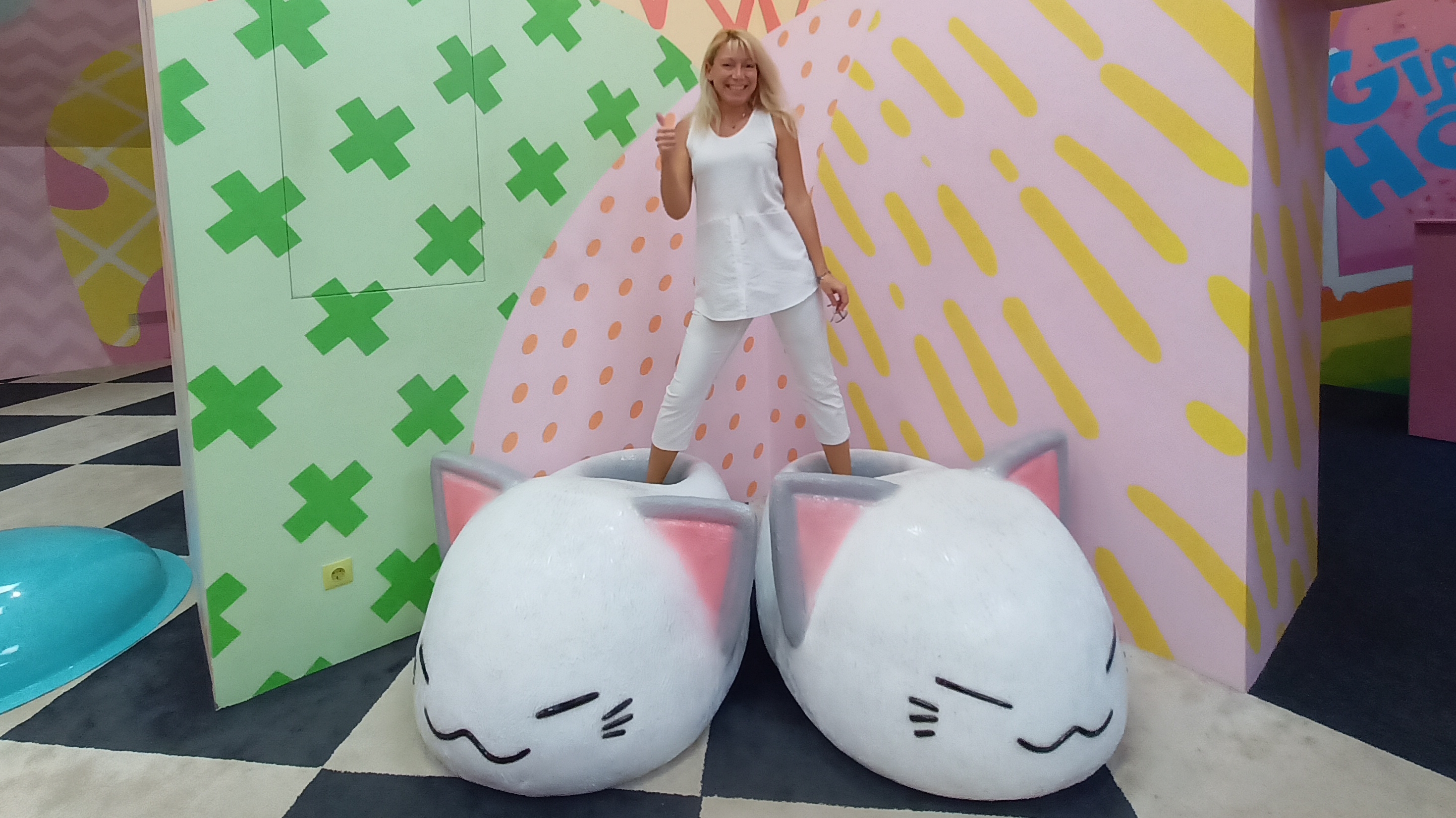 Всем добрый день. Сегодня хочу поделиться своими впечатлениями и эмоциями после посещения пространства "Музей детства" - "Сказки и завлечения на Арбате , 16". Билет брала через руспас за 10 рублей и 500 баллов. Мне было интересно, что это за локация и я достаточно часто бываю на Арбате, но похоже всегда проходила мимо и не обращала внимание. От метро Арбатская идти не более 8 минут, можно и от метро Смоленская. Вашему вниманию будет отдельно стоящее двухэтажное здание. Какие есть на выбор локации: 1. Love box 2. Дом Великана 3. Лабиринт Алиса в Зазеркалье 4. Побег из Джунглей Я выбрала "Дом Великана", так как хотелось ощутить себя маленькой девочкой среди огромных размеров вещей, прям, как в сказке. Я не пожалела, что выбрала эту локацию. Уборная находится на первом этаже и получилось, что я немного успела посмотреть и другие локации. На втором этаже изначально пришлось идти по красивому и яркому лабиринту - фото будут красочные. Это прям отличная локация для фотосессии. И захожу в сам зал - моему взору открывается - огромное помещение с гигантскими локациями. Это и огромный кусок сыра, будильник, розовый единорог, огромная детская кроватка, куда можно залезть. На любую локацию можно забраться - это вообще очень круто. На единорога аналогично!!! Рядом с кроватью - огромный стаканчик со сладкой водой, рядом качели - пончики. Чуть дальше дом мышки или все в относительной миниатюре, но прикольно. Затем куриные яички - шикарного размера!!! Рядом отменная кухня, куда можно зайти внутрь и оказаться внутри плиты. Фотки аналогично чудесные! Рядом можно немного отдохнуть внутри чашки, а затем идти к нереальному замеру светильника и двигаться к огромному кроссовку. Можно фото сделать на нем, а так же под ним - под ним интереснее, на мой субъективный взгляд. Рядом палочка - я не рискнула залезать, а вот при выходе шикарные домашние тапочки , аналогично завораживающего размера. Когда я туда пришла, то была одна, затем пришел мальчик лет 10 - его мама осталась внизу. Ему было не очень интересно, так как он пробыл не более 5 минут и ушел. Я предложила сделать его фото на локации, но он постеснялся видимо передать это маме. Пришел сотрудник с профессиональным фотоаппаратом, я попросила его сделать несколько фото на мой телефон - он отказался и я решила рискнуть и спуститься к администратору и попросить его. Очень любезная девочка сделала шикарные фотографии на мой телефон абсолютно бесплатно, так что если вы пришли самостоятельно, то обязательно спросите и если людей на локации нет, то вам не откажут, а если есть, то ещё круче - вы друг другу сделаете отличные фото!! Я шикарно провела время на этой локации, очень рада, что все же решилась поехать, а были сомнения. Если есть возможность у вас, то я рекомендую рассмотреть, как один из вариантов проведения времени, тем более если у вас получится взять через "Игру Русспас". Это очень круто, что есть такая шикарная возможность посмотреть и узнать про новые локации, о которых я и не догадывалась, хотя проходила не единожды в этом году рядом! Всем отличного настроения и конечно шикарных фотографий на память!!