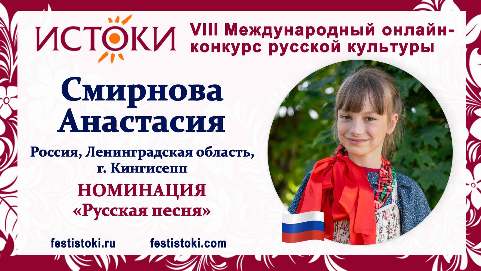 Участник VIII Международного онлайн-конкурса русской культуры "Истоки". Номинация "Русская песня". Русская народная песня "Пойду плясать". Сайт: festistoki.ru / festistoki.com E-mail: festistoki@mail.ru