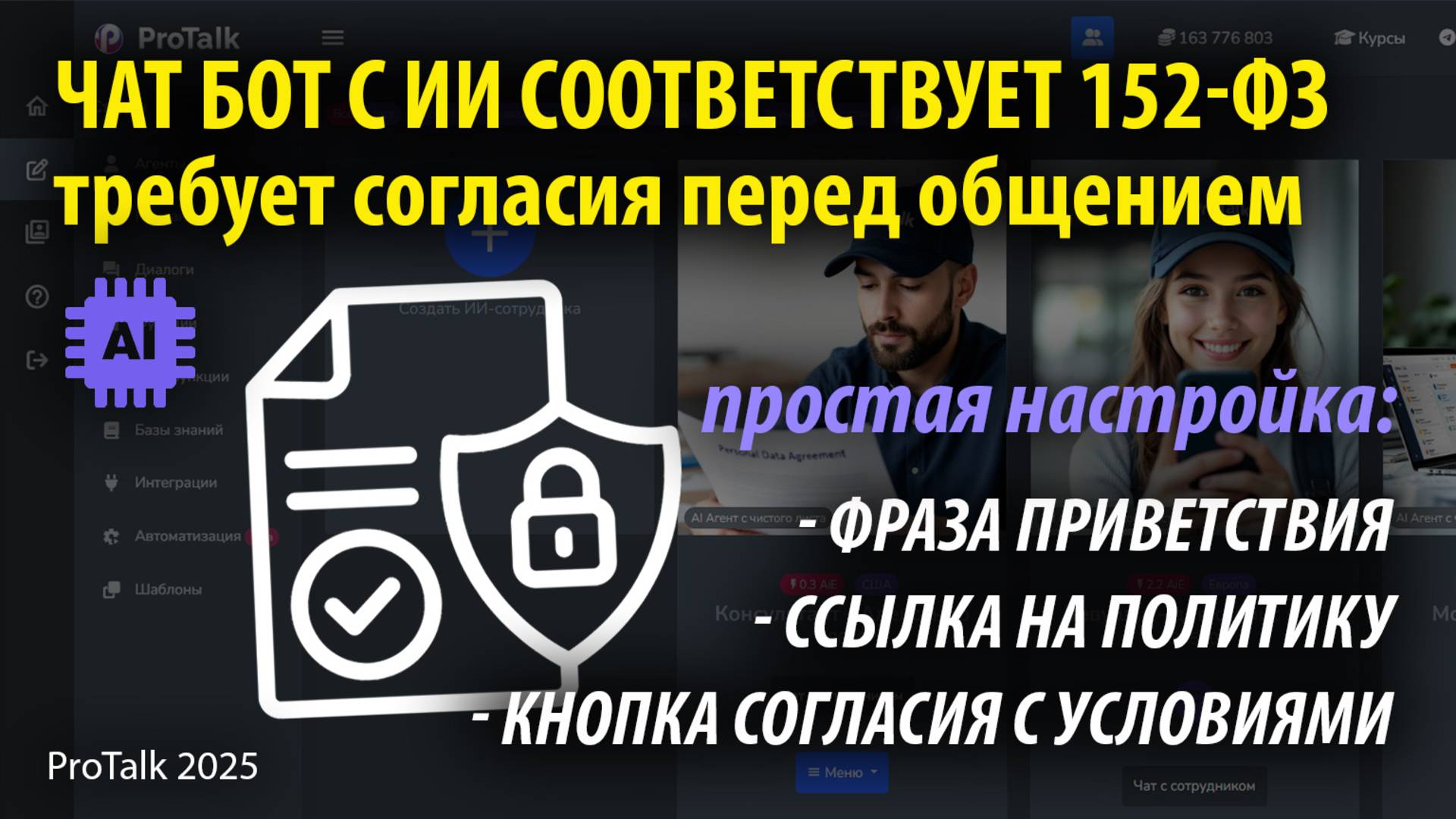 Ваш ИИ чат-бот соответствует 152-ФЗ? Добавляем согласие за 5 минут в платформе ИИ ботов ProTalk!