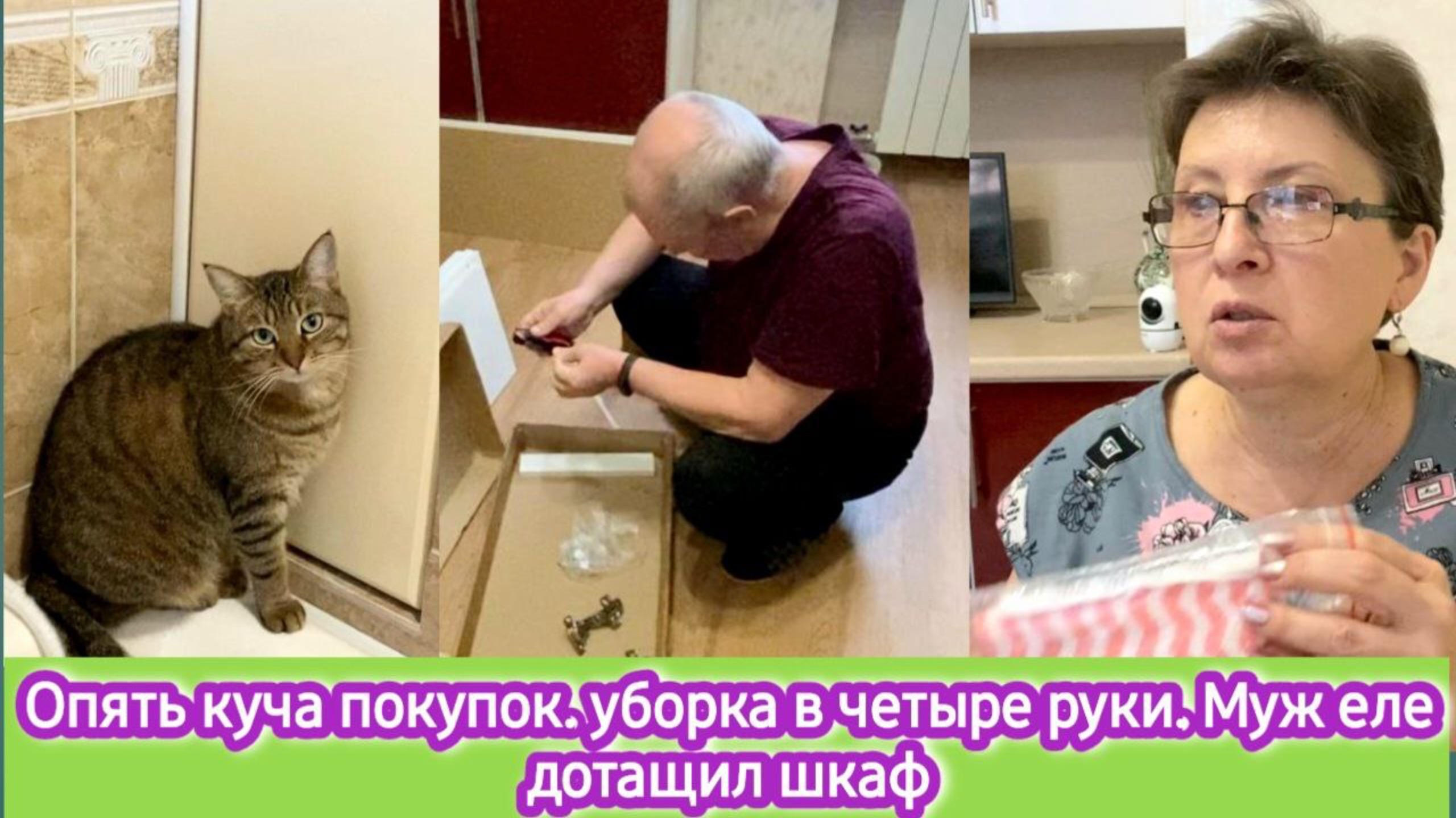 Опять куча покупок. Уборка в четыре руки. Муж еле дотащил шкаф