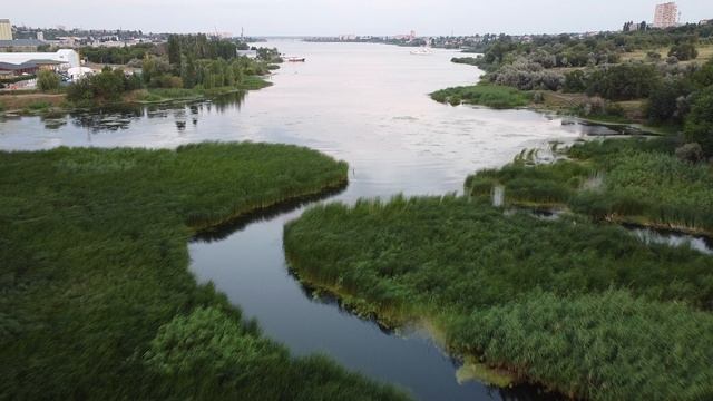 Река Камышинка со высоты птичьего полёта открывается вид на город Камышин