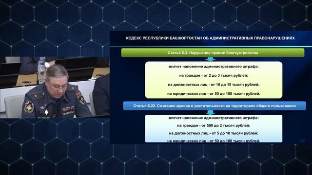 Начальник Главного управления МЧС России по Республике Башкортостан Марат Латыпов принял участие в оперативном совещании, которое Премьер-министр Башкортостана Андрей Назаров провел с руководителями министерств и ведомств. Он выступил с докладом «О готовности к предстоящему пожароопасному сезону 2023 года» По состоянию на 17 апреля 2023 года на территории республики произошло 2448 пожаров, при которых погибло 94 человека и 74 человека получили травмы различной степени тяжести. Зарегистрировано 484 природных ландшафтных пожара, 5 из которых лесные на общей площади более 498 га. Все пожары в оперативном порядке были ликвидированы. Основной причиной возникновения природных и ландшафтных пожаров является неосторожное обращение с огнем. На сегодняшний день в республике определены 184 населенных пункта, 44 садовых некоммерческих товарищества и 41 территория детских оздоровительных лагерей подверженных угрозе распространения природных пожаров. Главным управлением МЧС России по Республике Башкортостан совместно с Госкомитетом РБ по ЧС организован комплекс профилактических мероприятий, направленных на соблюдения органами местного самоуправления требований пожарной безопасности в населенных пунктах, подверженных угрозе природных пожаров, в том числе ограничивающий сельскохозяйственные палы сухой травы в пожароопасный период. Для оперативного реагирования на природные загорания и эффективные действия по их тушению на начальном этапе, недопущения перехода пожаров на населенные пункты, а также в лесной фонд на пожароопасный сезон текущего года создано свыше 850 межведомственных мобильных групп, численностью более 3 тысяч человек. Одной из действенных мер профилактики правонарушений, связанных с нарушением порядка содержания территорий и выжигания сухой травянистой растительности является работа административных комиссий. Кодексом Республики Башкортостан предусмотрена административная ответственность по статье 6.22 - сжигание мусора и растительности на территориях общего пользования) и по статье 6.3 - нарушение правил благоустройства). В целях снижения рисков возникновения природных пожаров, а также пожаров в населенных пунктах распоряжением Главы республики с 17 апреля до 15 мая на всей территории республики введен особый противопожарный режим. На период действия особого противопожарного режима устанавливаются дополнительные требования пожарной безопасности, в том числе предусматривающие запрет на разведение костров и ограничение посещение гражданами лесов, принятие дополнительных мер, препятствующих распространению лесных и других ландшафтных (природных) пожаров. С 17 апреля по 17 мая 2023 года на территории республики проводится также «Месячник пожарной безопасности».
