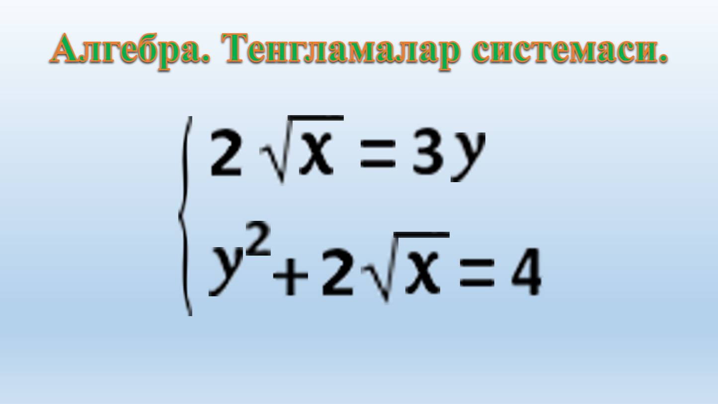 Algebra. Tenglamalar sistemasi: 2√x =3y va y²+2√x=4