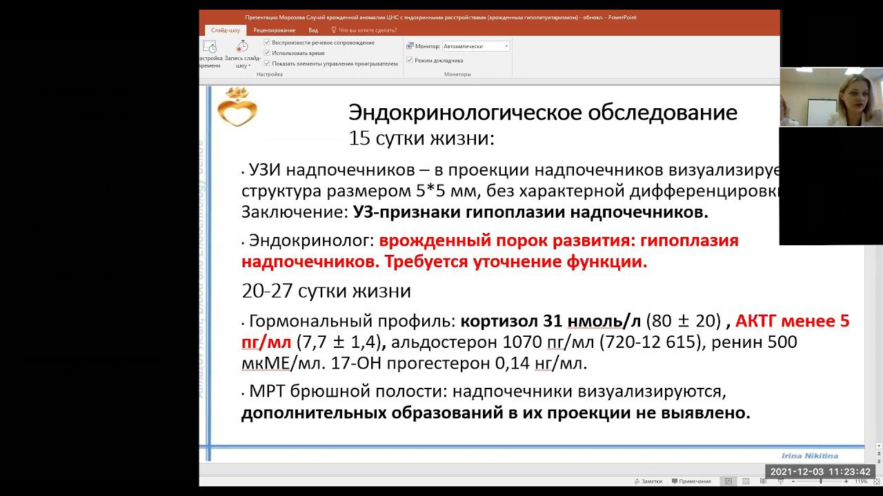 Случай врожденной аномалии ЦНС с эндокринными расстройствами (врожденный гипопитуитаризм)