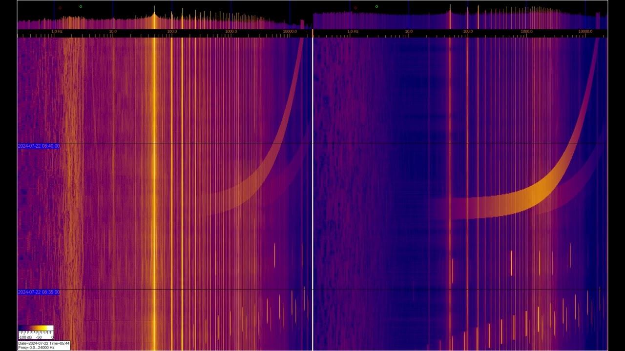 Левый и правый сигналы снимаются с индуктивных датчиков с ферромагнитными элементами, но левый соеденён дополнительно с заземлением на 2-х штырях из нержавеющей стали заглублённых на 1м и отстоящих друг от друга на 1м. Можно видеть большое количество гармоник от электросети и различные искуственные сигналы. Интерес представляют сигналы на частотах ниже 50Гц, где можно наблюдать работу специализированной аппаратуры и сигналы связи подводных лодок и подъземных объектов. Отдельно стоит рассматривать сигналы в районе 1-3Гц на левом спектре, которые относятся к геомагнитному фону, который модулируется солнечной активностью, более детально их можно рассмотреть в видео под названием "Сигналы из Земли", которые есть в плэйлистах ниже. О ПРОИСХОЖДЕНИИ ЧАСТОТНОЙ МОДУЛЯЦИИ СЕРПЕНТИННОЙ ЭМИССИИ https://youtu.be/bwWHggY1IVU?si=xAX1diRKI9MxQJ88&t=1740 Previous monitoring is in playlists: EMF monitor https://youtube.com/playlist?list=PLiRg2YCbXcwn41BHqADKVBep_TgVq6XUN Очень Низкая Частота ~ Very Low Frequency https://youtube.com/playlist?list=PLiRg2YCbXcwnp5DxM4PnSs7k_Rnypaqek SIGNALS IN THE GROUND https://youtube.com/playlist?list=PLiRg2YCbXcwl6f3Bf5arHbGSOCNE5U71O поддержать канал: 8-999-654-93-44
