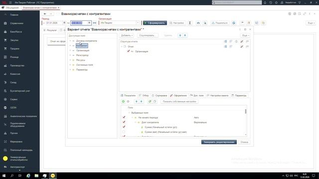 Описание настройки отчета по взаиморасчетам с контрагентами
