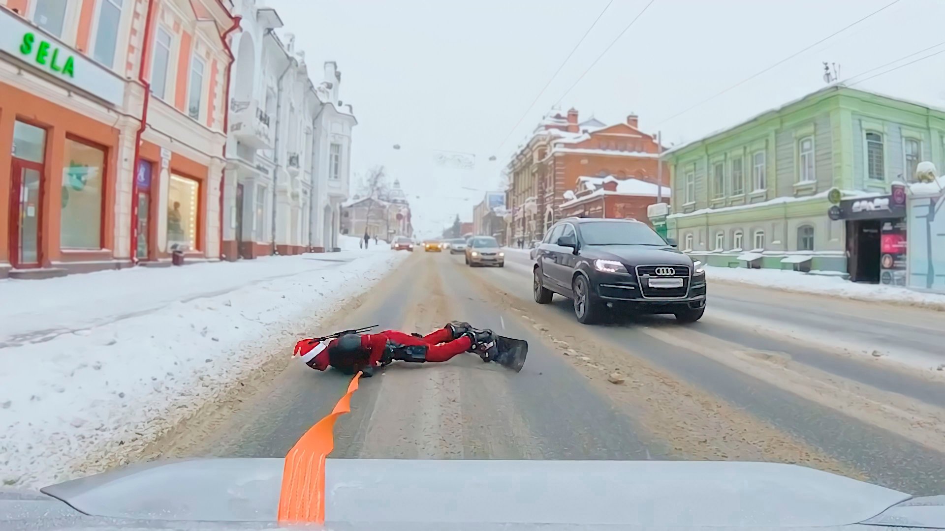 ДЭДПУЛ ЕДЕТ НА СНОУБОРДЕ ПО ДОРОГЕ / ДАРИМ ПОДАРКИ НА НОВЫЙ ГОД