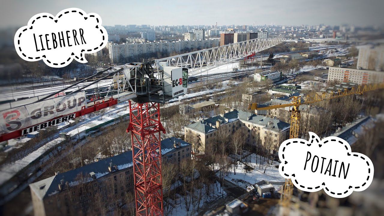 Башенный кран LIEBHERR. Башенный кран POTAIN. Стройка РЕНОВАЦИИ. Tower crane in Moscow