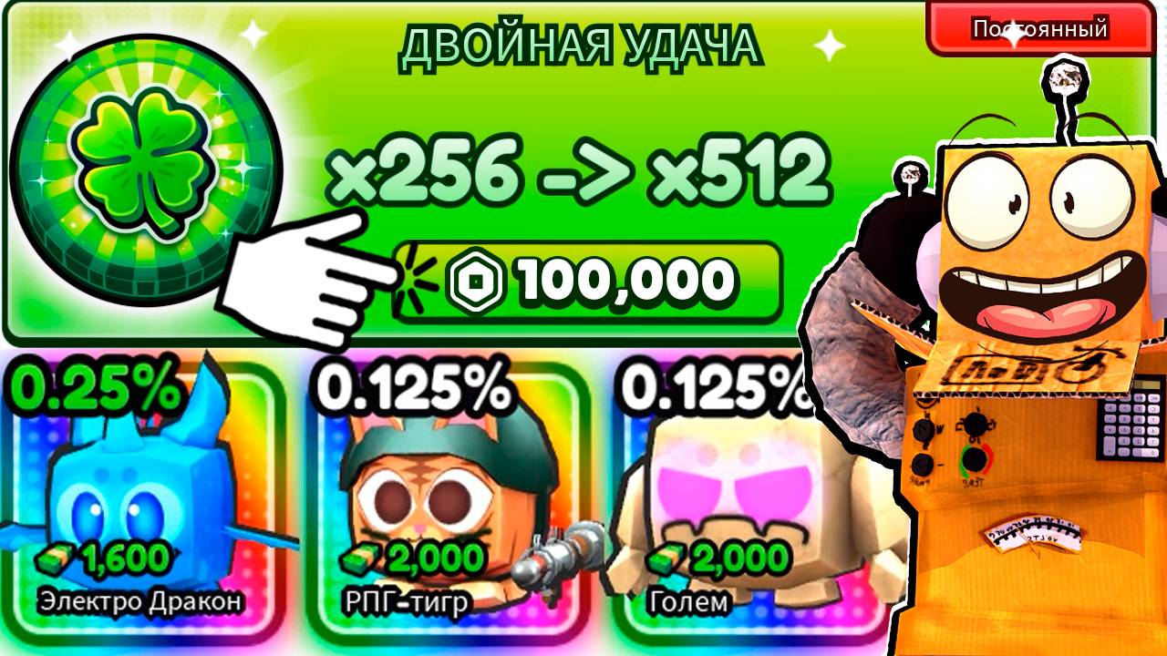 КУПИЛ МАКСИМАЛЬНУЮ УДАЧУ ЗА 100.000 РОБУКСОВ! ЧТО БЫ ПОЛУЧИТЬ ИХ в Roblox Pet Tower Defense