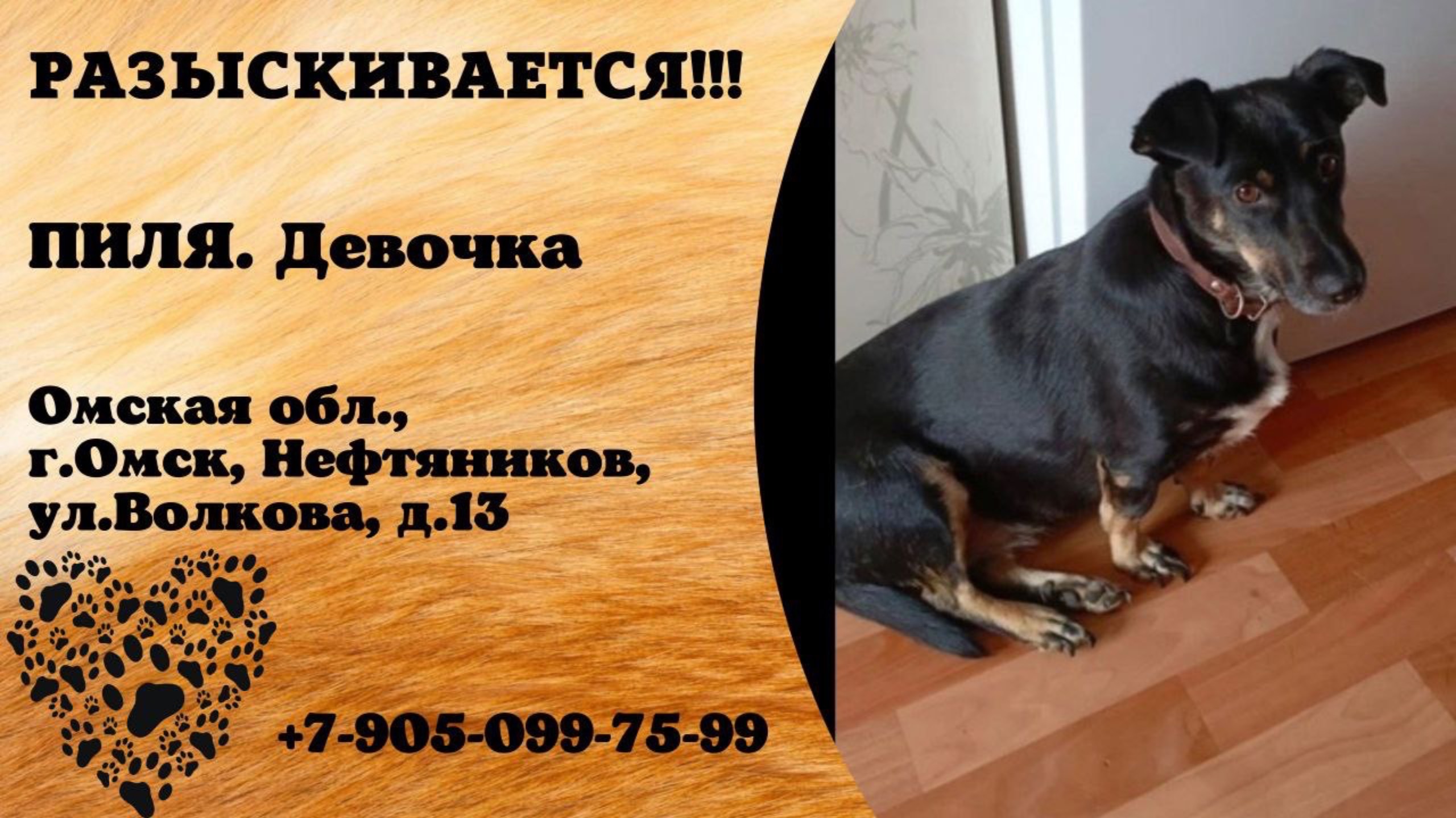 Омская Омск Пропала собака 01.01 Очень прошу помощи в поисках собачки. Пропала в районе дома Волкова 13 (Нефтянники) убежала собачка. Коротколапик похожа на таксу ну крупнее из особых примет белая грудка. Зовут Пиля. К незнакомым может конечно и не подойти. Огромная просьба кто увидит придержать или хотя бы сообщить о её местонахождении. 14.01 замечена в районе 10 лет Октября и его окрестностях. Собачку ищут и очень ждут дома!!!!!! Звонить на номер 89050997599 Инфо: https://vk.com/wall-198815410_171084 #пропала_собака#омская#омск