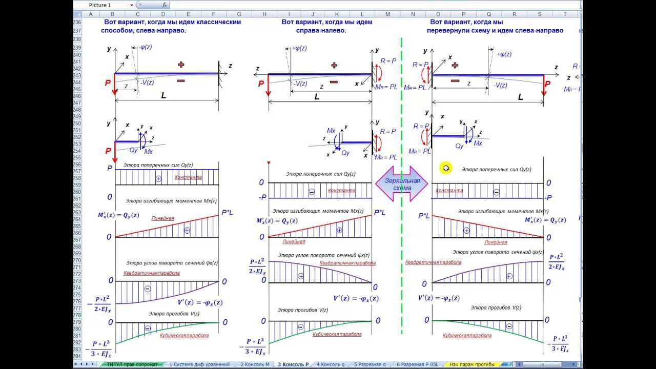 Сайт онлайн университета https://sopromex.ru/ Подписка на все мои бесплатные материалы https://makeev.justclick.ru/podpiska_2020 Продолжаем публикацию цикла бесплатных видео материалов проф. Макеева С.А. "ПРАВИЛЬНЫЙ СОПРОМАТ". Сегодня публикуем "Видео 3. Консольный стержень, загруженный поперечной силой. Часть 2". На ЮТ канале все видео цикла будут собраны в плейлист "ПРАВИЛЬНЫЙ СОПРОМАТ" https://www.youtube.com/playlist?list=PLRg82kZ234fIBkjPXeAT2GhQkDlB0pdc3 1. ВЫВОД ОСНОВНЫХ ДИФФЕРЕНЦИАЛЬНЫХ ЗАВИСИМОСТЕЙ ПРИ ПОПЕРЕЧНОМ ИЗГИБЕ ПРЯМЫХ СТЕРЖНЕЙ (видео № 1 в трех частях: Часть 1, Часть 2, Часть 3); 2. КОНСОЛЬНЫЙ СТЕРЖЕНЬ, ЗАГРУЖЕННЫЙ СОСРЕДОТОЧЕННЫМ МОМЕНТОМ (видео № 2); 3. КОНСОЛЬНЫЙ СТЕРЖЕНЬ, ЗАГРУЖЕННЫЙ СОСРЕДОТОЧЕННОЙ СИЛОЙ (видео № 3, Часть 1, Часть 2); 4. КОНСОЛЬНЫЙ СТЕРЖЕНЬ, ЗАГРУЖЕННЫЙ РАВНОМЕРНО-РАСПРЕДЕЛЕННОЙ НАГРУЗКОЙ (№ 4); 5. РАЗРЕЗНАЯ БАЛКА, ЗАГРУЖЕННАЯ РАВНОМЕРНО-РАСПРЕДЕЛЕННОЙ НАГРУЗКОЙ (видео № 5); 6. РАЗРЕЗНАЯ БАЛКА, ЗАГРУЖЕННАЯ СОСРЕДОТОЧЕННОЙ СИЛОЙ В СЕРЕДИНЕ ПРОЛЕТА (№ 6). При расчете стержней мы применяем правую систему координат с началом на левом конце стержня, при этом размещаем оси ху в сечении с ориентацией оси у вверх, как и учили нас в школе, оставшуюся ось z направляем вдоль стержня слева направо. При таком подходе не нужны ПРАВИЛА знаков внутренних сил, и правила знаков построения эпюр (часовая стрелка, правило "зонтика", правило "акробата", часовая стрелка…). Правильные эпюры строятся автоматически сами собой, исходя из принципа правой системы координат, нет никакой путаницы, при этом эпюра изгибающих моментов строится на растянутом волокне, как и положено у строителей...