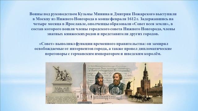 С 2005 года 4 ноября отмечается как День народного единства. Этот праздник установлен в честь важного события в истории России - освобождения Москвы от польских интервентов в 1612 году. 4 ноября — день Казанской иконы Божией Матери (в память избавления Москвы и России от поляков в 1612 году, которая помогла народу выстоять и создать Великую Державу).