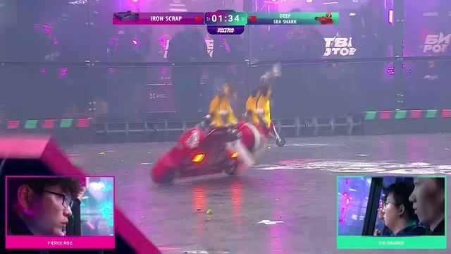 1/4 финального этапа чемпионата завершилась сражением, которое так ждали зрители — произошла битва двух китайских роботов. Iron Scrap команды из Шэньчжэня так атаковал робота-конкурента, что в какой-то момент вспыхнул. Казалось, еще немного, и этот бой для него завершится. Смотрим, как это было! Смотрите полные бои в VK http://vk.com/champbitvarobotov Для вопросов info@bitva-robotov.ru