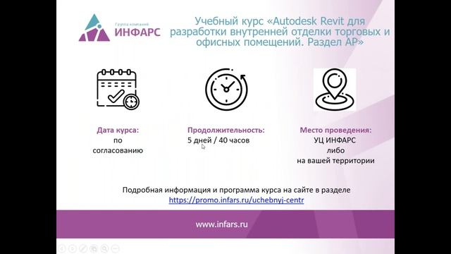 Вебинар, рассказывающий о возможностях Autodesk Revit для для разработки внутренней отделки торговых и офисных помещений На примере раздела АР). Узнайте больше о курсе "Autodesk Revit для разработки внутренней отделки торговых и офисных помещений" https://promo.infars.ru/courses/autodesk-revit-dlya-vnutrenney-otdelki