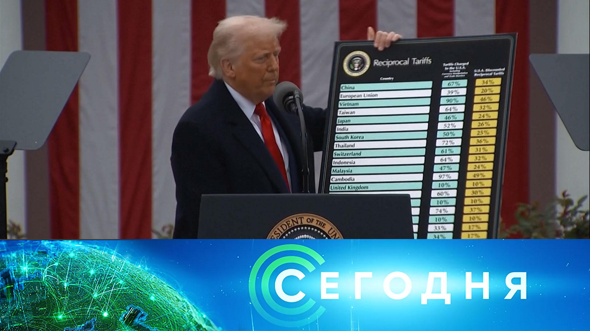 00:00 В этом выпуске 00:34 Российские военные в зоне СВО приближаются к городу Купянск. При поддержке FPV-дронов и танков штурмовые отряды теснят ВСУ и выбивают врага с его позиций. 05:05 Два года заботы и внимания: как фонд «Защитники Отечества» помогает участникам спецоперации и их семьям. 11:37 Мировая торговая война или начало «золотого века» США: Дональд Трамп ввел повышенные пошлины для 185 стран. 13:06 «Это тяжелый удар для миллионов людей»: как в ЕС отреагировали о введении новых таможенных пошлин в частности для европейских стран. 18:21 До 3085 увеличилось число жертв разрушительного землетрясения в Мьянме. Смотрите все выпуски программы «Сегодня» на RUTUBE: https://rutube.ru/plst/53542/