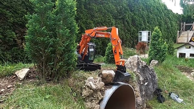 Stone wall build above the tunnel Hitachi Zaxis ZX 135 US RC 1:15 Scale
