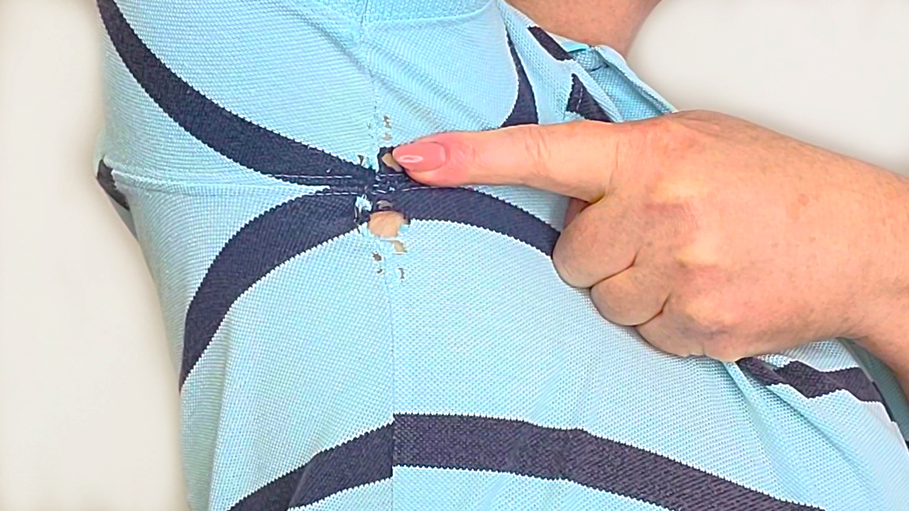 Дырки на футболке заделываю в 2 этапа и буквально за 5 минут, так ткань больше не расползается