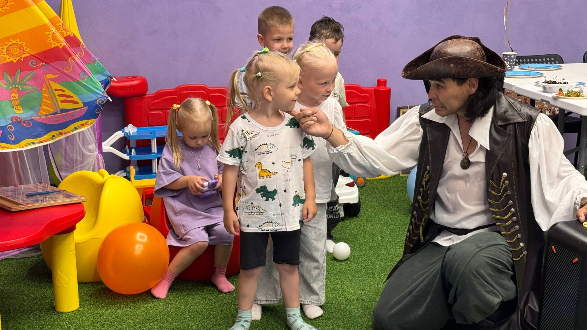 Проведение дня рождения в детской игровой комнате - лофте 2KIDS с анимацией ПИРАТЫ. В аренду игровой комнаты входят: столы, стулья, посуда, телевизор, колонка, термопот, игрушки, игровой комплекс.