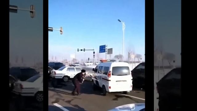 Побег из города в Китае. Из закрытого на карантин из-за корона-вируса города попытался выехать человек на автомобиле через кордон полиции. #побег #авария #китай