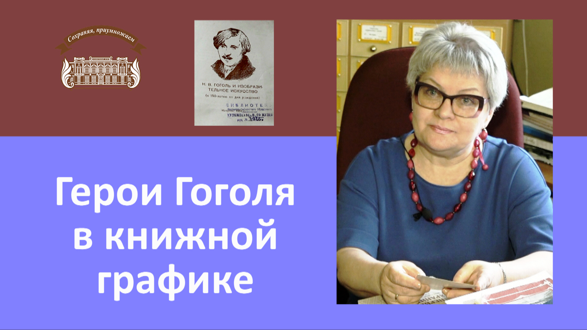 22 апреля 2024 года в Иркутской областном художественном музее имени В.П Сукачева открылась выставка «Герои Гоголя в книжной графике. «Жемчужинки» из фондов музея. К 215-летию писателя». Выставка знакомит с редкими и уникальными книжными изданиями бессмертных произведений Николая Васильевича Гоголя из библиотеки музея, а также с подлинными гравюрами, в том числе иркутских художников и, конечно, великолепными фарфоровыми декоративными фигурками знаменитых российских фарфоровых заводов. В 2024 году исполнилось 215 лет великому мастеру слова Николаю Васильевичу Гоголю, нетленные творения которого будут актуальны, пока существует человечество. Библиотека музея впервые выставляет особенные экземпляры. Самое роскошное дореволюционное издание поэмы Н. В. Гоголя «Похождение Чичикова или Мертвые души», опубликованное в 1900 году петербургским издателем Адольфом Марксом поражает своей величественностью. Подарочный фолиант готовился к выпуску 5 лет. В нем 10 гелиогравюр и 355 иллюстраций знаменитых российских и зарубежных художников. Переплет изготовлен из коленкора и кожи, декорированных золотом и красками. Торшонированные и золотой обрезы, декоративно-орнаментальные с золотыми прожилками форзацы завершают великолепие этого книжного памятника. Возле книги, как будто сошедшая со страниц главного произведения писателя, чета Маниловых — фарфоровая скульптурка (ЛФЗ, 1953). Выставку украшают книги: «Тарас Бульба» (М., 1948), «Ревизор» (М., 1952), «Майская ночь, или Утопленница» (М., 1953), «Шинель» (М, 1952), «Портрет» (М., 1979), «Повесть о том, как поссорился Иван Иванович с Иваном Никифоровичем» (М. 1952), «Ночь перед Рождеством» (М., 1982) и др. Экспозиция предоставляет возможность взглянуть на гоголевских героев глазами выдающихся художников-иллюстраторов: Дмитрия Кардовского, Николая Кузьмина, Евгения Кибрика, Бориса Дехтерёва, Ювеналия Коровина, творческой группы «Кукрыниксы», Михаила Соколова. Впервые выставляются подлинные графические работы Евгения Кибрика и иркутских художников: Галины Новиковой, Николая Домашенко, Валерия Мошкина. Роль яркого дополнения выставки играют персонажи из произведений Гоголя — фарфоровые статуэтки, украшенные росписью, Ленинградского фарфорового (ЛФЗ) и Дулёвского фарфорового заводов: величественный Тарас Бульба, игривые Солоха с дьяком, трогательные Вакула и Оксана, жеманные Маниловы.