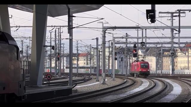 Красивое видео проезд пассажирских и грузовых поездов по железной дороге в Европе Австрия
