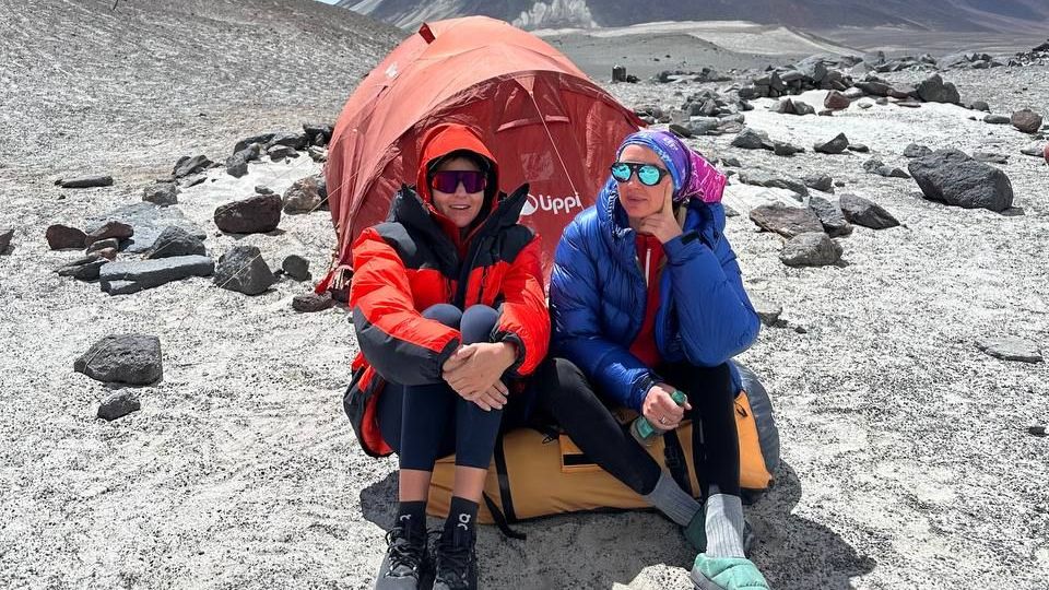 Супер-гид Клуба 7 Вершин Алексей Лончинский передаёт из Чили: Добрый день!!! Группа Клуба 7 Вершин "Семеро" только что спустилась с акклиматизационного выхода и ночёвки на высоте 5300 метров на склонах Охос дель Саладо. Накануне мы без приключений поднялись на машинах на ровную площадку. Все вместе поставили палатки. Прогулялись по дороге-тропе выше лагеря. Поужинали и легли спать. В эту поездку мы впервые вышли на такую высоту, ещё и с ночёвкой. Сон, в принципе, был, но не всегда и не очень хороший. Но утром все встали в бодром настроении, быстро собрали лагерь и без приключений спустились в наш лагерь Лагуна Верде. Сейчас отдыхаем и набираемся сил к завтрашнему дню!!! Всего наилучшего, гид Алексей Лончинский.