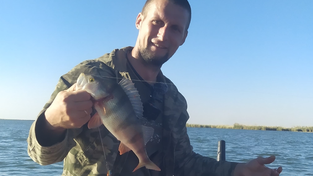 Трофей пойман.Рыбалка на реке Маныч, наловили окуня.