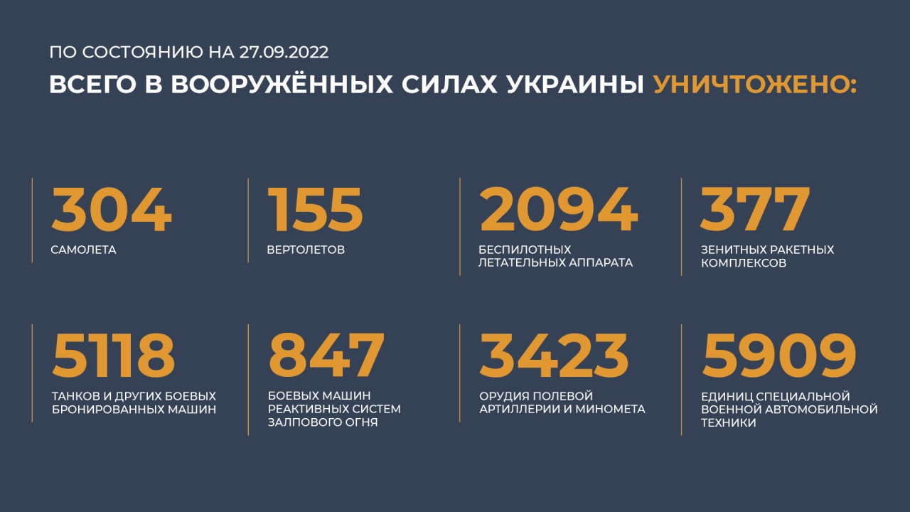 Сводка МО РФ о ходе СВО на украине 27.09.2022