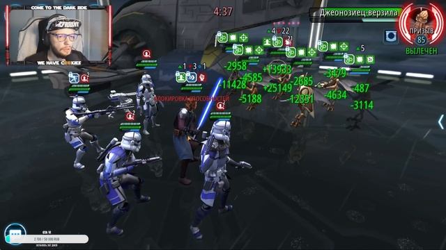 Продолжаем играть в Star Wars галактика героев! ✔️Плейлист с игрой: http://bit.ly/FrissonSWGOH Приятного просмотра ✔️Стать спонсором: https://boosty.to/frissongames ✔️Помощь в развитии канала: Тинькофф: 5536-9140-3587-1882 https://www.donationalerts.com/r/frisson_xl https://boosty.to/frissongames ✔️Я в соц.сетях: ✔️Telegram - http://bit.ly/FrissonTelegram ✔️Я.Дзен - https://zen.yandex.ru/frissongames ✔️Паблик VK - http://bit.ly/FrissonPubVK ✔️Все права на музыку принадлежат Epidemic Sound: https://www.epidemicsound.com/ ✔️По вопросам рекламы: frisson.youtb@gmail.com Игра позволяет собирать персонажей, показанных в трилогии приквелов, сериале «Звёздные войны: Войны клонов», оригинальной трилогии, Пробуждении Силы и компьютерной игре Star Wars: Battlefront. Все персонажи открываются за так называемые осколки, они же нужны для прокачки героев. Кроме того, оборудование, которое можно надеть на героев увеличивает их показатели здоровья, атаки и брони, а особые способности персонажей можно открыть за материал для улучшения способностей Mk. По классам герои разделяются на лекарей, поддержку, атакующих и танков. Помимо Кампаний за Светлую и Темную сторону Силы соответственно, присутствуют режимы: Испытания (где ежедневно игроки должны выполнить определённые задачи), Арена (на которой сходятся в схватках игроки за звание лучших), Кантина (где можно получить материалы для улучшения способностей Mk и особые осколки персонажей), Галактическая Война (где игрок проходит небольшую кампанию со всеми своими персонажами, заменяя выбывших бойцов новыми и где можно получить особых персонажей), и События (где можно заработать бонусные кредиты, опыт и осколки легендарного магистра Йоды, Гранд- Адмирала Трауна, Императора Палпатина, R2-D2, а так же новых персонажей) #starwars #galaxyofheroes #frissongames