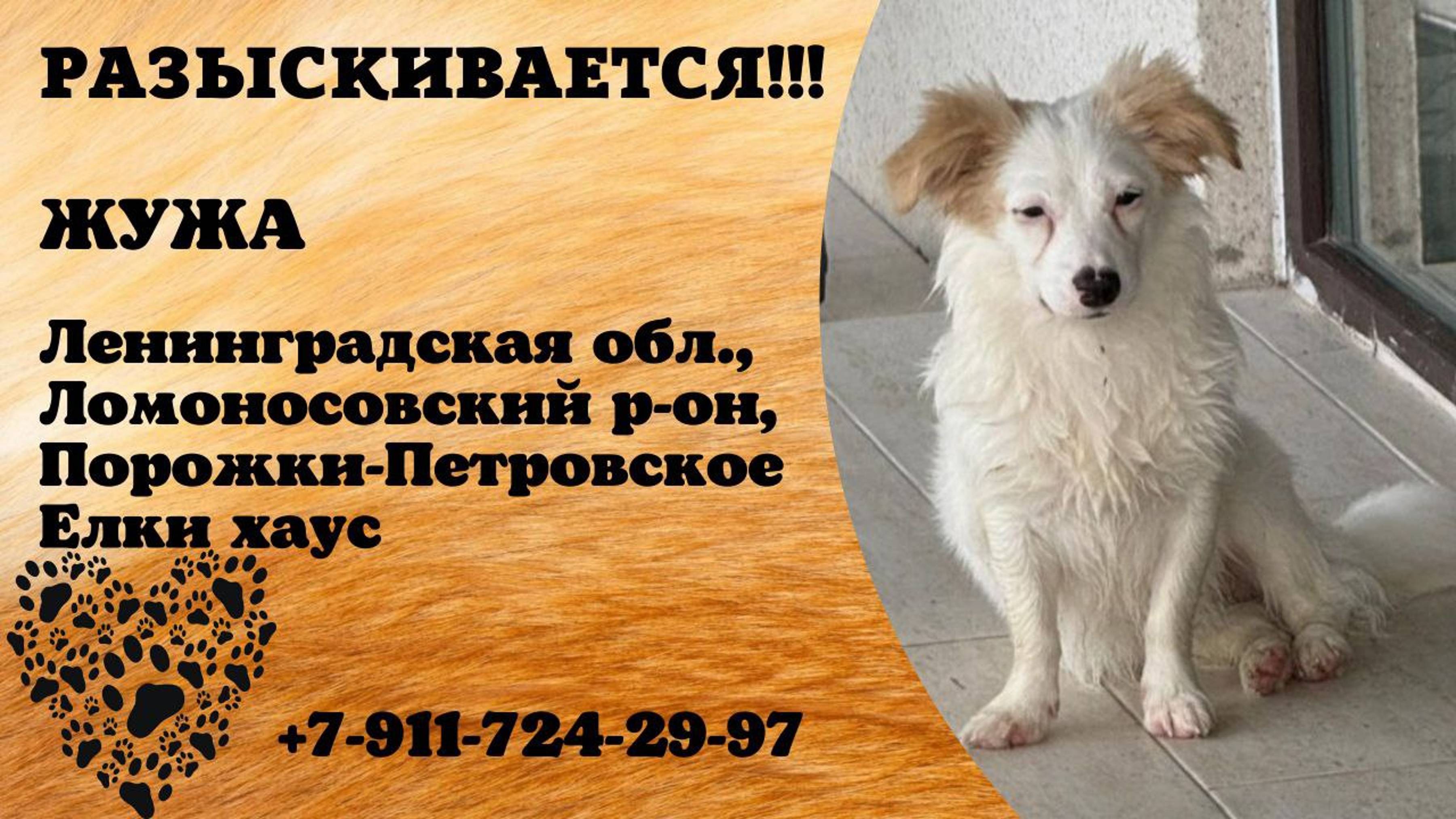 Пропала собака! ЖУЖА. Ленинградская обл, Ломоносовский р-он, Порожки-Петровского, Елки хаус