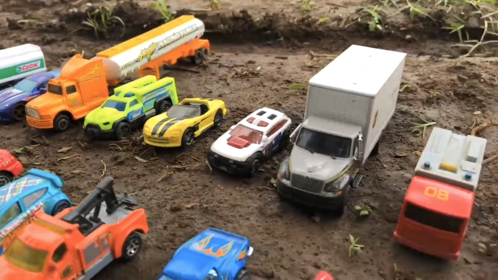 Играем в машинки грузовики бензовозы на песке для детей