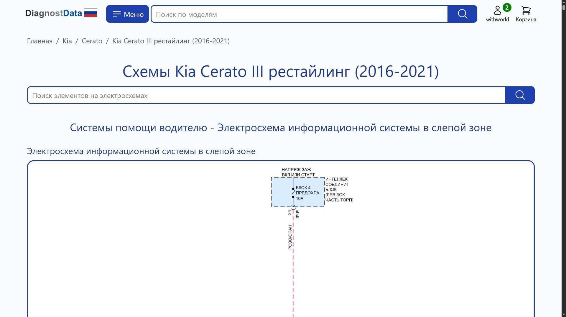 https://diagnostdata.ru/kia/cerato/iii-2016-2021/ Электрохемы, распиновки, схемы электропроводки Kia Cerato III рестайлинг (2016, 2017, 2018, 2019, 2020, 2021 годов выпуска) 2.0L GDI, 2.0L MPI Схемы на русском языке для систем: Схемы Системы помощи водителю, Схемы Системы помощи водителю, Схемы Магнитола, Схемы Приборная панель, Схемы Блок предохранителей и реле, Схемы Блоки управления кузовом, Схемы Складная крыша/люк, Схемы Клаксон, Схемы Сигнализация, Схемы Память, Схемы Точки подключения масс, Схемы Фары, Схемы Центральный замок, Схемы Сиденья, Схемы Вентилятор охлаждения, Схемы Can шина, Схемы Подогрев стекол, Схемы Освещение салона, Схемы Электроусилитель руля, Схемы Стартер/генератор, Схемы Дворники и омыватели, Схемы Багажник, задняя дверь, лючок топливного бака, Схемы Блокировка селектора, Схемы Круиз-контроль, Схемы Стеклоподъемники, Схемы Подушки безопасности, Схемы Кондиционирование воздуха, Схемы Управление зеркалами заднего вида, Схемы Предупреждение, Схемы Фары и фонари, Схемы Антиблокировочная система abs, Схемы Коробка передач 2.0l gdi, Схемы Коробка передач 2.0l mpi, Схемы Двигатель, и др.