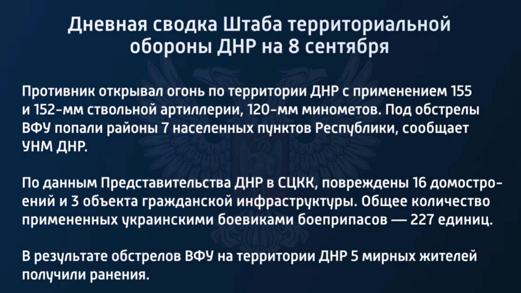 Дневная сводка Штаба территориальной обороны ДНР на 8 сентября 2022 года