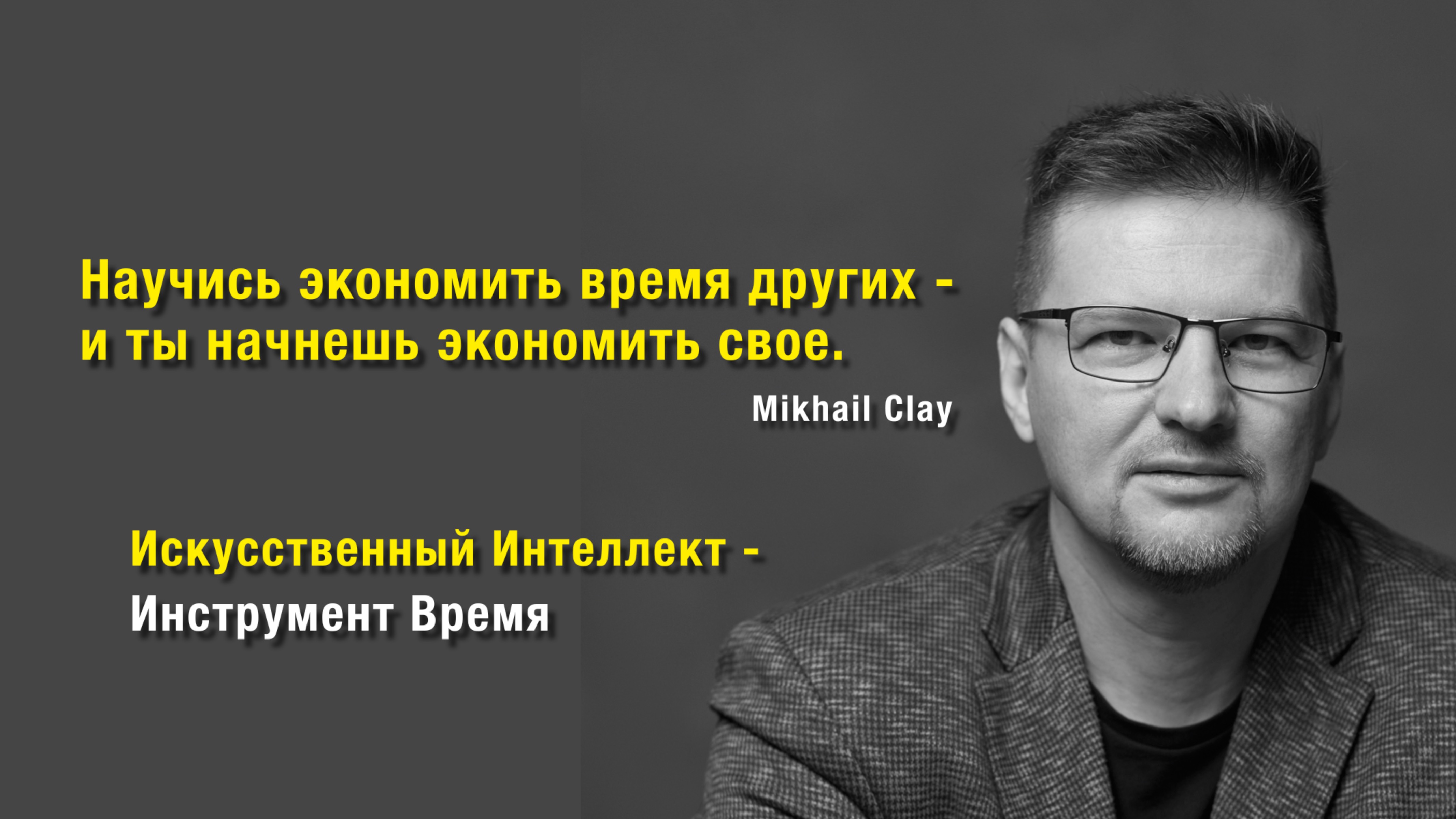Одна из моих цитат, научись экономить время других, и ты начнёшь экономить время своё. Искусственный Интеллект экономит много времени. Есть уже ряд инструментов! Раньше для выполнения определенных задач мы привлекали разного рода специалистов, это занимало много времени и соответственно денег. Mikhail Clay
