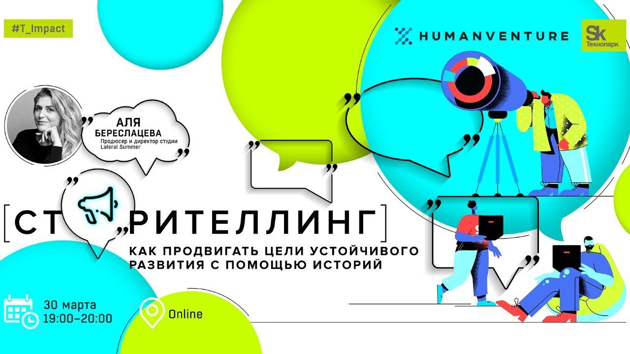 #T_Impact Сторителлинг: как продвигать цели устойчивого развития с помощью историй Лучший способ добиться социальных изменений и завоевать сердца людей — рассказать захватывающую историю. Вместе с продюсером и директором студии Lateral Summer (https://lateralsummer.ru/) Алей Береслацевой поговорим о том, как сторителлинг помогает импакт-проектам продвигать цели устойчивого развития. ✔️Почему истории меняют мир. Сторителлинг на службе социальных изменения. ✔️Продюсирование перемен: бренд-контент, и коммуникации, которые мы заслужили. ✔️Повышение осведомленности, просвещение и формирование смыслов в условиях ограниченных ресурсов. ✔️Эмоциональная связь бренда и аудитории. Увеличение лояльности к социально-полезному бренду. Присоединяйтесь к нашему сообществу импакт-предпринимателей и инвесторов https://t.me/skimpact Рассказывайте о своих проектах с хештегом #intro