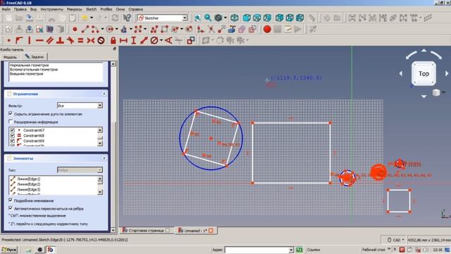 10. FreeCAD. Верстак Sketcher. Линии и привязки. Домашнее задание.