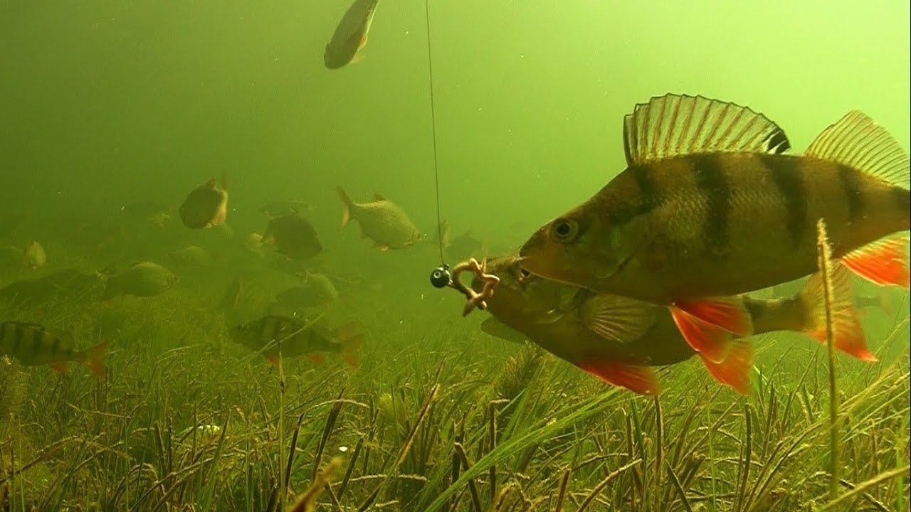 Что происходит подо льдом вовремя рыбалки. Подводная камера.