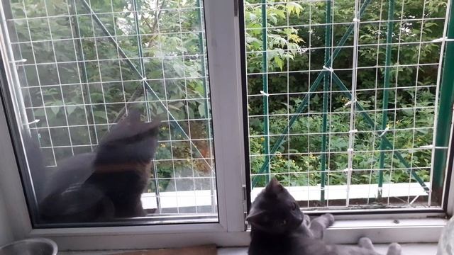 Мишка с Тишкой кайфуют на окошке, довольные.