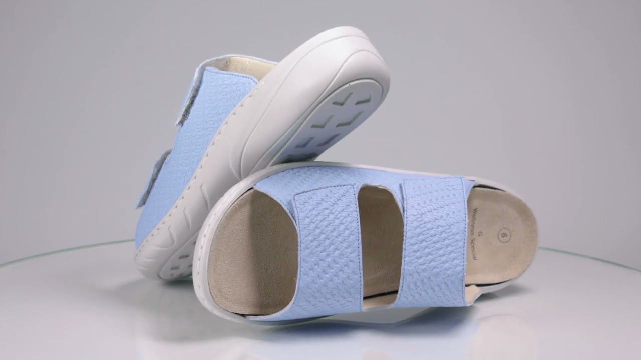 Модель Wellness Special выполнена в великолепном летнем оттенке безоблачного неба с плетеной фактурой. Универсальная обувь, ведь сабо подходят и на лето, и в качестве домашней обуви.