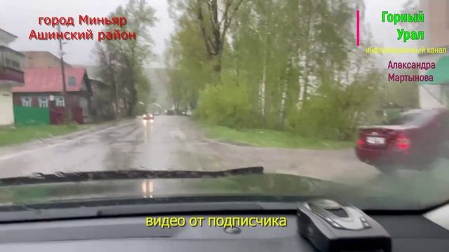 16.05.2022г. в г. Миньяр прошел дождь с градом. Улицы местами подтоплены. На обочинах лежит град.