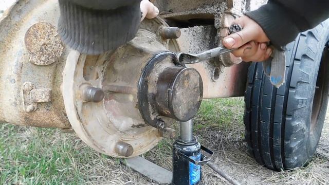 Ремонтирую прицеп, который приобрёл недавно, вместе с трактором МТЗ-82. Здесь я делаю колесо. Завулканизаировал камеру, заменил покрышку, смазал подшипники солидолом.